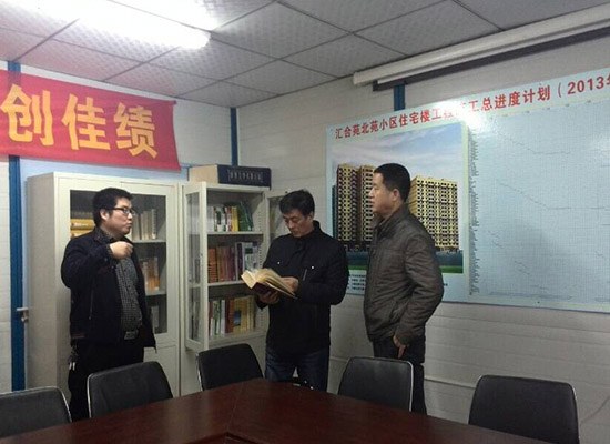 2014年11月20日下午,省直工会副主任张爱军、宣传负责人马永红同志,到六分公司汇合苑项目部,对项目职工书屋进行了检查、验收。
