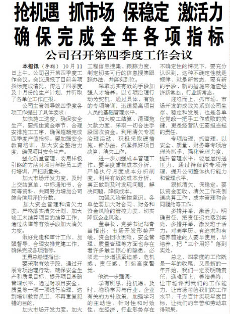 公司2014年10月份最佳文章评选结果揭晓 来源: 修改时间:2014.12.15 浏览:3577 公司2014年10月份最佳文章评选结果揭晓 根据各单位报送的评选结果并经公司评委会认真研究,2014年10月份《河北二建》和公司官方网站最佳文章是:2014年10月15日《河北二建》一版刊登的《抢机遇 抓市场 保稳定 激活力 确保完成全年各项指标——公司召开第四季度工作会议》,作者:李聪,单位:公司机关。 上一条 返回列表 下一条