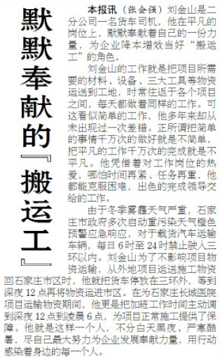 公司2015年1月份最佳文章评选结果揭晓 来源: 修改时间:2015.05.04 浏览:3666 公司2015年1月份最佳文章评选结果揭晓 根据各单位报送的评选结果并经公司评委会认真研究,2015年1月份《河北二建》和公司官方网站最佳文章是:2015年1月15日《河北二建》三版刊登的《一分公司组织团青参观书法摄影展》,作者:贾荣荣,单位:一分公司;三版刊登的《默默奉献的“搬运工”》,作者:张会强,单位:二分公司。 上一条 返回列表 下一条