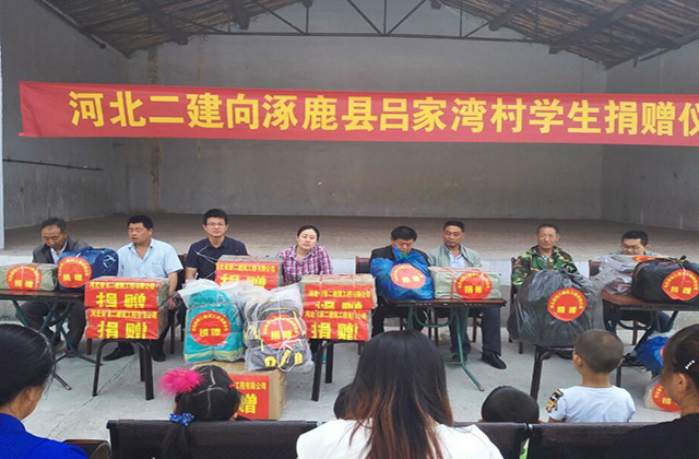 “谢谢叔叔阿姨,我们会好好学习,长大以后回报社会!”拿到新书包、衣服等物品的孩子们纷纷喊道。5月27日上午,涿鹿县谢家堡乡吕家湾村的村委会大队部热闹非凡,河北二建向对口帮扶村的学生们赠送学习用品仪式隆重举行。公司派政治工作部2人走进大山深处的吕家湾村,将公司1116名职工捐赠的13230元爱心物资发给了该村的37名学生,包括书包、图书、笔、笔袋、跳绳、板球拍、跳棋、毽子、夏季运动套装等,并为该村设立了“爱心书屋”。