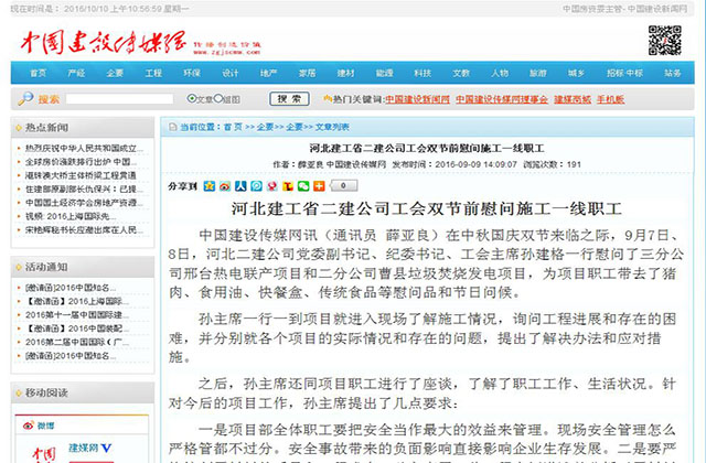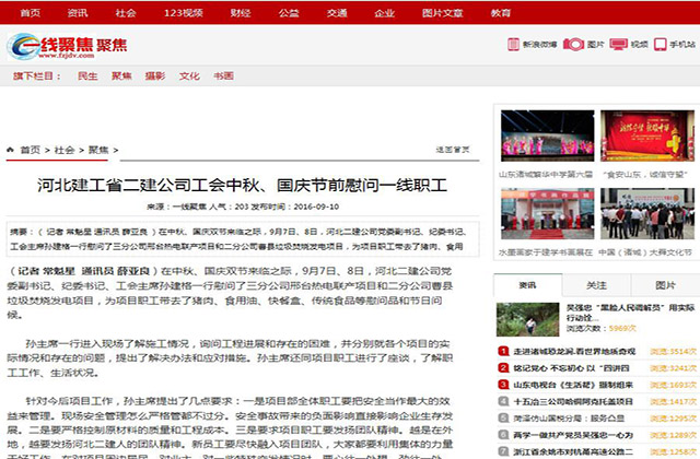 随后,人名日报社主管的人民日报海外网、人民铁道网、中华铁道网、中国建设传媒网、新丝路资讯网、今企网、聚焦中国网等10余家媒体对公司领导双节期间慰问一线职工进行报道。