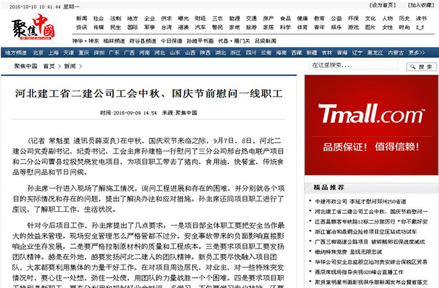 人民日报海外网等10余家媒体报道公司领导双节期间慰问一线职工