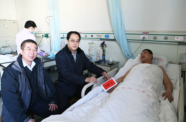 “你们有什么困难要及时跟公司提出来。”公司党委副书记、纪委书记、工会主席孙建格紧握着困难党员闫长亮的手,关切的说道。
