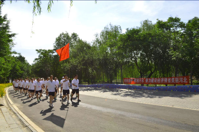 瓦蓝的天空,炙热的烈日,烘托出园内一片美丽而火热的景象。在植物园正门,公司职工们早已列好整齐的队伍,整装待发。“起步——走!”随着号手于海洋一声浑厚有力的口令,队伍大步跨出了起点。队首,鲜艳的“河北二建”旗帜在广阔蔚蓝的天空中飘扬,指引着队伍奔向终点。此次健步走路线由植物园南门出发,绕行园内一周,全程约7公里。行进过程中,无论在幽静的林荫下、澄澈的湖水边,还是在炽热的山前道、蜿蜒的小路上,公司职工们都迈着铿锵有力的步伐,阔步前行。“河北二建,有一必争!河北二建,有旗必夺!一二一!一二一……”嘹亮的口号喊出了公司职工奋发向上的激情,喊出了公司职工昂扬奋进的精神风貌,声音冲破天际,响彻云霄。虽然已近中午,烈日当头,但这丝毫不减公司职工们的气势,大家卯着劲儿,依旧保持步伐稳健,队形整齐,彰显着二建人激情与活力。最终,大家胜利到达终点。
