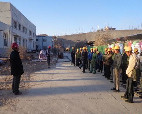 “高处作业必须系挂安全带……”这是4月16日上午6:30在一分公司大同市东郊污水处理厂二期的施工现场,工程项目部的工长石玉龙,利用早上上班前的时间,对在现场作业的所有人员,宣讲《员工安全手册》。