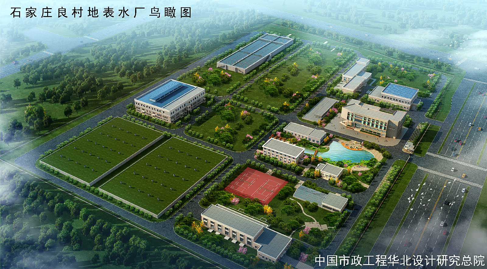良村开发区地表水厂位于石家庄经济技术开发区华药大街,占地238亩,总规模为30万m³/d,一期工程建设规模15万m³/d,总投资4.997亿元。工程于2015年7月31日开工,2017年4月25日竣工。厂区构筑物为抗渗、抗冻钢筋混凝土结构,建筑物为框架、砖混结构。共有混合反应沉淀池、超滤膜净水间、清水池、加氯加药间、送水泵房及变配电间、污泥浓缩及处理间、综合楼等15个单体工程。