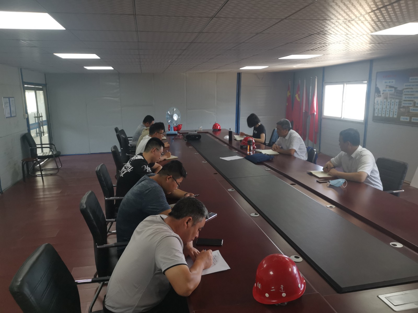 检查结束后,王勇一行回到会议室召开座谈会。会上,王勇首先讲了此次安全督导检查的目的意义,旨在通过落实包联责任,形成上下统一,协调一致的安全管理新格局,切实提升全员的安全意识,持续推进公司安全形势稳定可控,在此基础上,以现场保市场,外塑形象,内强素质。随后,他又详细询问了上次来项目检查指出问题的整改情况、施工现场正在进行的悬挑钢梁、物料提升机的安装及项目的进度安排等情况,最后结合现场检查及项目下阶段的工作,强调了三方面内容。