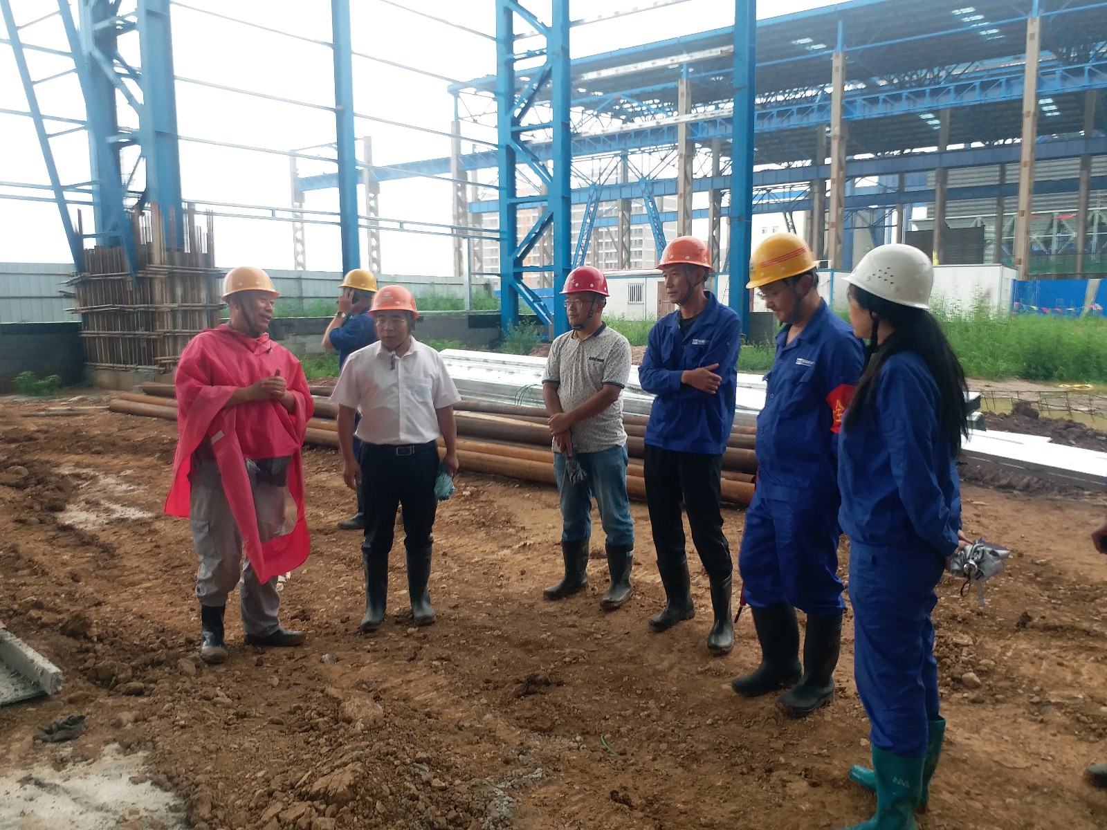 8月6日下午,石家庄市矿区常务副区长苏军献、石钢公司副总经理封一丁一行冒雨来到三分公司石钢环保搬迁项目检查指导防汛、安全工作。