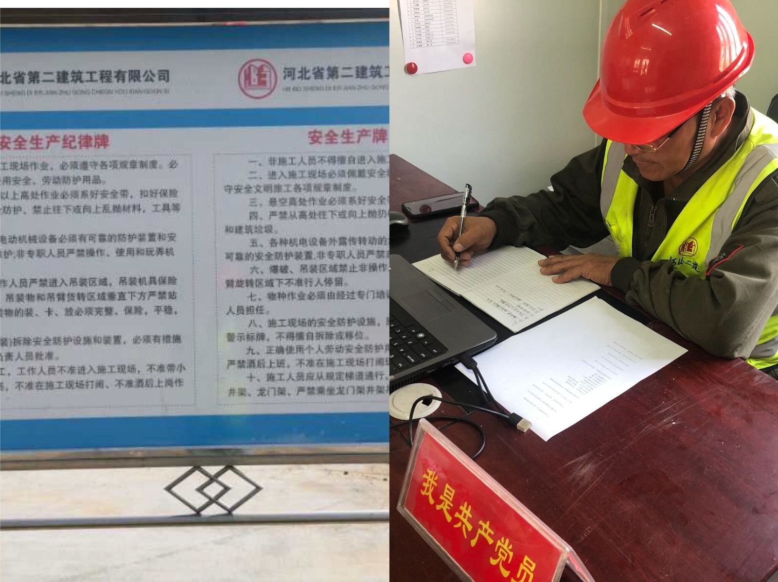 9月26日,走进项目施工现场,通过与项目安全负责人沟通交流,详细了解到,该项目党支部积极建立党员责任区,党员示范岗,党支部书记董云鹏利用党课、支部大会等形式,加强党员、职工经常性、规范性安全教育,充分发挥了党员先锋模范作用,实现从项目部管安全到职工要安全的思想转变,让安全意识内化于心、外化于行。