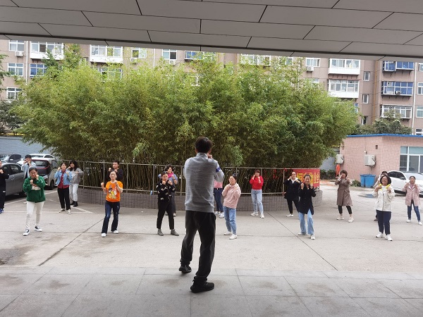 万里秋风丹桂,千般美景盛世。9月30日下午,三分公司机关院内呈现出团结向上、积极进取的和谐气氛,40多名职工正在以饱满的热情,优美的舞姿体验健康之美、运动之美。这是分公司又一次创新活动,在喜迎“中秋国庆”双节之际,分公司特约了社会专业舞蹈老师教分公司职工跳搏击操、打太极拳,旨在倡导大家健康工作,快乐生活。