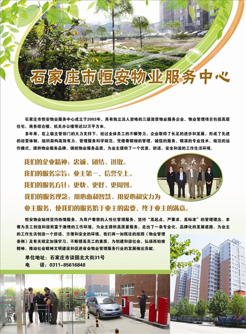 恒安物业 擦亮“窗口” 提升服务#Black 来源: 修改时间:2012.05.24 浏览:3582 擦亮“窗口” 提升服务 近日,石家庄市物业协会的期刊《石家庄物业管理》2012年第三期,专版介绍了恒安物业服务中心的风貌。(恒安物业 王金芳) 上一条 返回列表 下一条