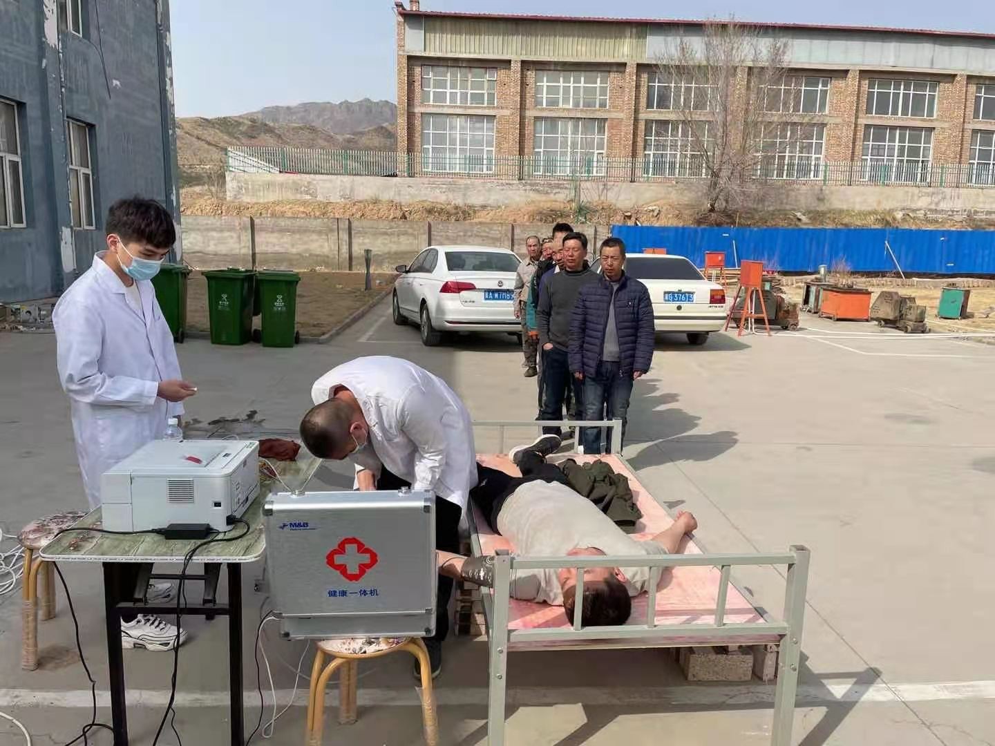 由于项目工期紧、任务重,为保证施工进度,项目经理刘立强提前与河家堰卫生室联系协调,采取“请进来”的模式为劳务工人进行体检,安排工人进行血压、心电图、内科听诊等检查。体检过程中,医务人员还为大家提供常见病用药指导等医药知识宣传咨询,同时针对预防常见疾病相关职业病及防治措施进行了详细讲解,对劳务工人提出的各种健康问题进行了耐心细致地解答,为缓解劳务工人长期以来心理和生理上的疲劳提供了很大帮助,让工人们对自己的身体状况有了进一步了解。