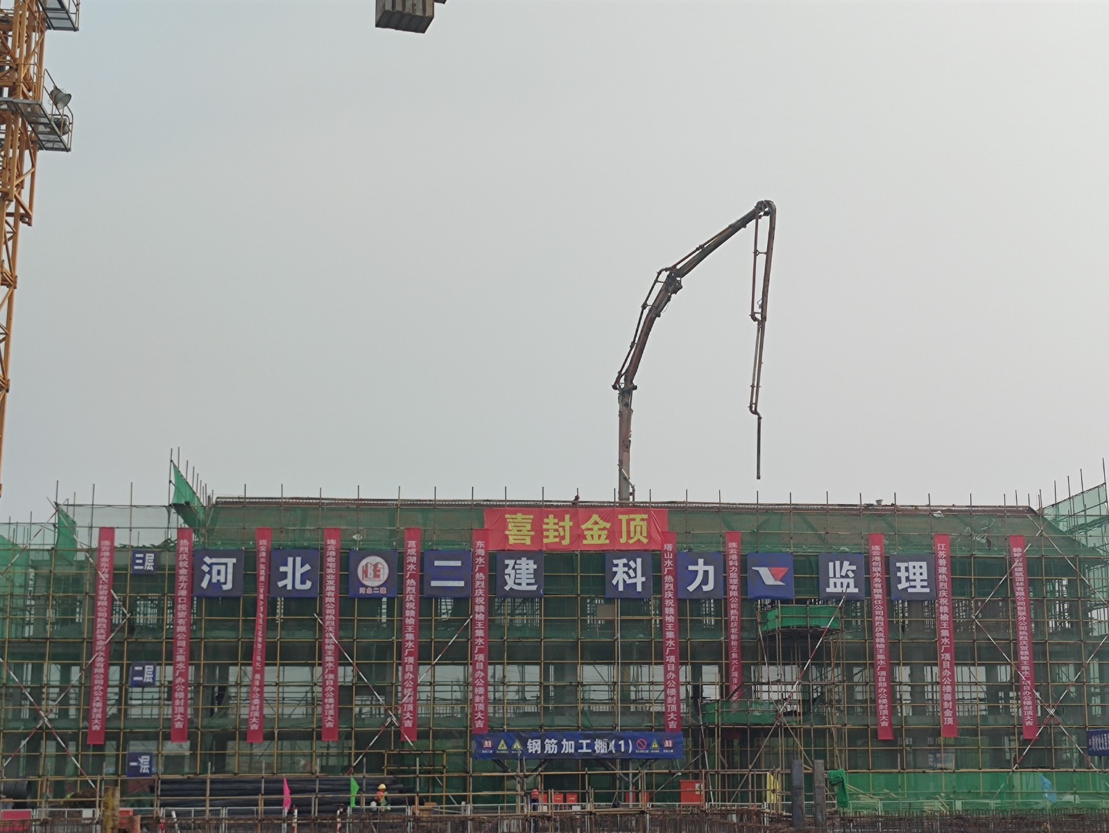 综合楼总建筑面积为1929.65平方米,框架结构,地上三层,建筑高度为14.2米。下午16时05分随着最后一方混凝土浇筑完成,办公楼实现顺利封顶。在施工期间,为确保工程“高质量,高标准”的要求,项目部全体人员坚持逢建必优、内强素质、外塑形象的工作理念,严格执行公司质量、安全文明施工等体系文件,保证了办公楼主体工程的成功封顶。项目部管理人员表现出来的团结一心,吃苦耐劳,顽强拼搏的施工风范给建设单位和监理单位留下了深刻印象,赢得了各方的称赞。