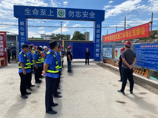 6月18日,正是初夏的天气,阳光明媚,天朗气清,由蠡县住建局组织的“2021年蠡县建筑施工标准化观摩会”在三分公司蠡县惠安家园一期工程项目如期举办。蠡县住建局副局长刘红彬带队,住建局、执法局相关人员及蠡县当地各建筑工地项目主要负责人参加观摩。