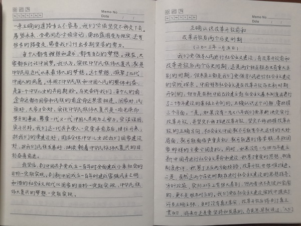 分公司党群办要求分公司全体党员将自己半年以来的党史学习笔记进行归纳整理,并在6月20日之前将笔记以图片格式发送至党群办邮箱。检查评比主要从学习笔记内容、篇幅篇数及页面字迹、学习进度等方面进行。从检查情况看,整体学习情况较好,学习态度端正,能够按照党史学习教育的要求进行认真学,仔细记,深刻悟。通过支部委员会评选,将学习笔记区分为优秀、良好、合格三个等次,大家相互翻阅,讨论优长不足,虚心请教学习,营造浓厚学习氛围。