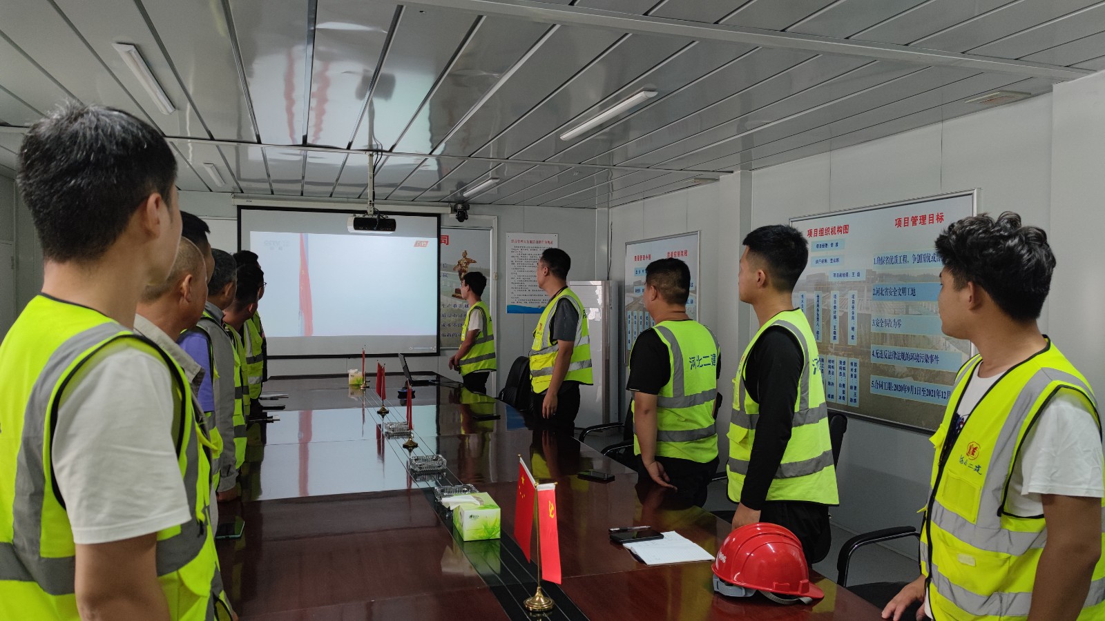 廊坊水厂项目部在确保项目安全生产的前提下,组织项目部职工观看了中国共产党成立100周年大会直播,观看过程中,大家不禁感叹,伴随着电视直播中五星红旗的冉冉升起,项目部全体职工以参与者身份参与到直播中升国旗唱国歌的环节,营造了庄严肃穆的观看氛围。