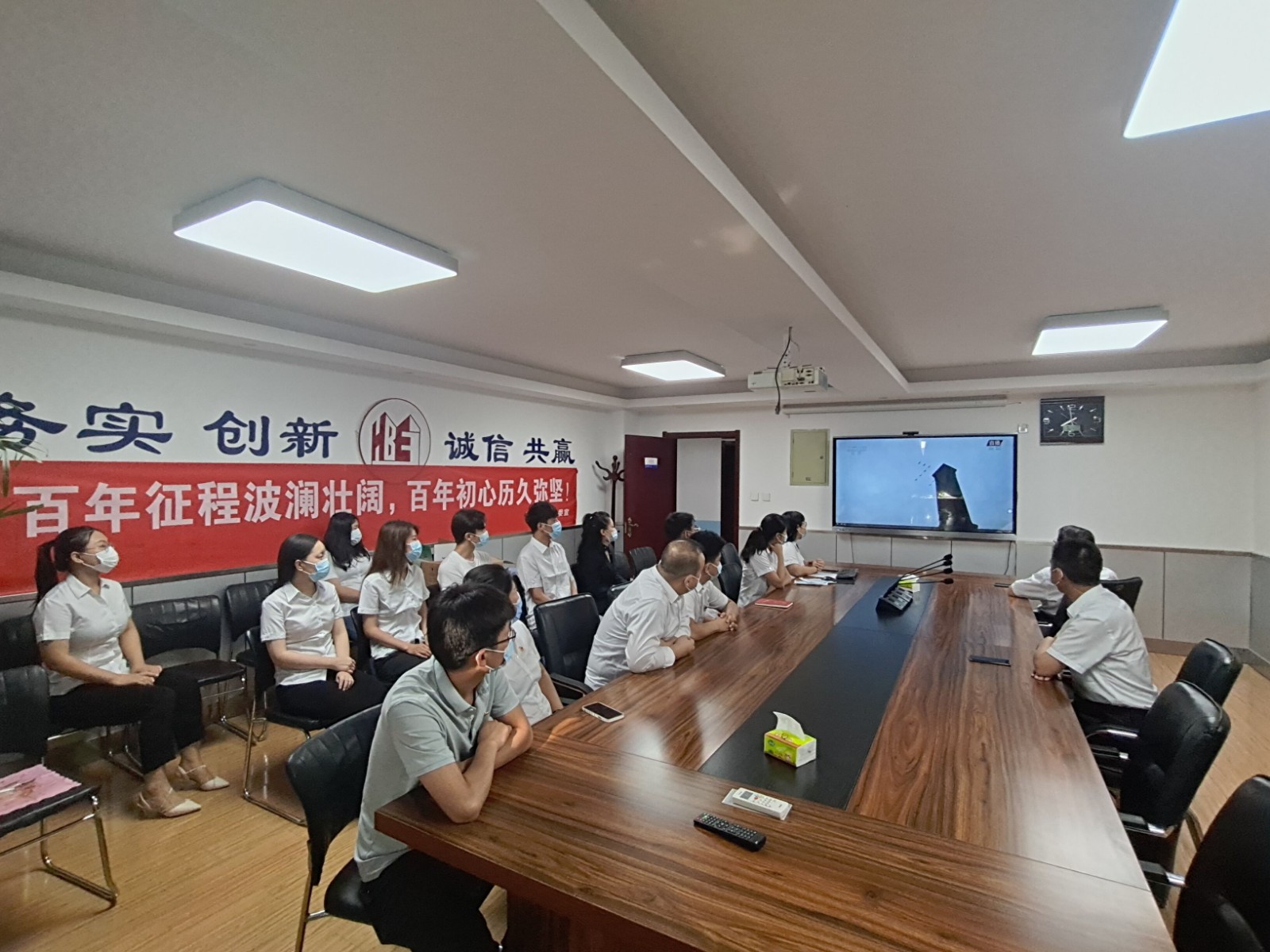 2021年7月1日是伟大的中国共产党成立100周年,在这个举国欢庆的日子里,四分公司机关科室各项目50余人同步观看中国共产党成立100周年大会直播,共同感受祖国的百年征程。