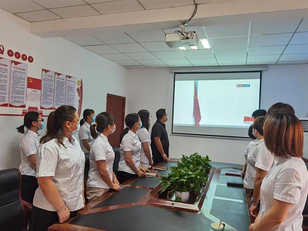 伴随着庄严雄壮的国歌声,鲜艳的五星红旗冉冉升起,全体职工肃穆而立,满怀崇敬向国旗行注目礼,向伟大的祖国致以最崇高的敬意和最美好的祝福。随后,全体职工认真聆听了习近平总书记在大会上的讲话。讲话从“一个庄严宣告”“一个伟大梦想”“四个伟大成就”“一个伟大精神”“九个必须”“一个殷切期望”和“一个号召”等方面,全面回顾了中国共产党百年奋斗的光辉历程,并号召新时代的党员和青年,牢记初心,坚定信念,为实现人民对美好生活的向往不懈奋斗,努力为党和人民争取更大光荣!