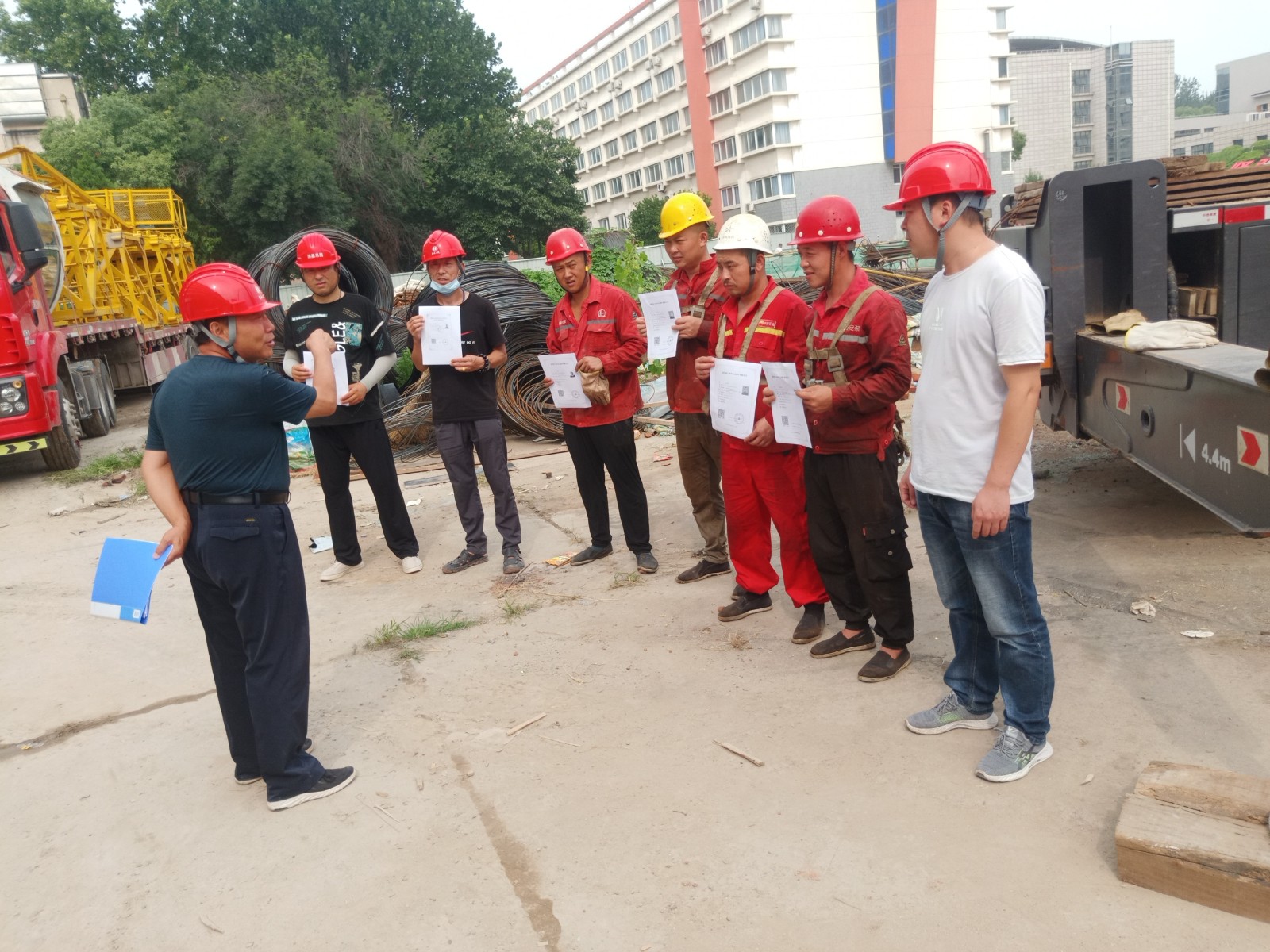 为保证廊坊武警学院项目顺利完成塔吊安装工作,8月11日,分公司在项目开工初期,针对该项目编制了塔吊安拆相关应急预案,保证了塔吊安装各道工序严格按标准要求进行。