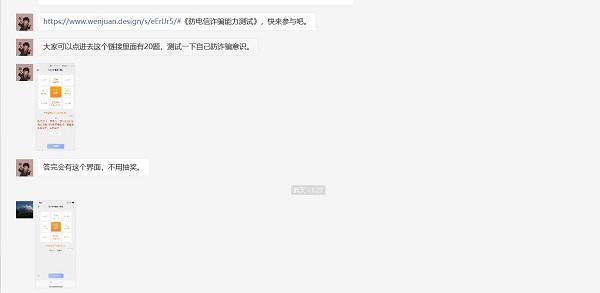 由李彦妮在群里发放答题活动链接,项目部人员进入进行答题,答完题后将答题截图发到群里。项目经理王鹏讲到:现在互联网越来越发达,每个人身边都存在着很多骗局,而网络是一把双刃剑,便利我们生活的同时也给诈骗分子制造了更多骗人的机会,我们需要不断加强防范意识,所谓害人之心不可有,防人之心不可无,不管是多亲近的朋友,或者是看起来很可怜的陌生人,我们都应该擦亮双眼,以防被骗。据了解,一切网络兼职刷单都是诈骗!一切网络免押贷款都是诈骗!一切网络交友引导投资理财都是诈骗!一切自称社保、消防、公检法要求转账都是诈骗!一旦上当受骗,要第一时间到当地公安机关报案,及时挽回损失。