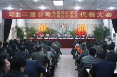 春晖耀二建共绘蓝图,聚力谱新篇再创辉煌。2013年2月28日,公司九届五次职工代表大会暨八届五次工会会员代表大会在公司培训中心隆重召开。职工代表带着职工们的重托,满怀喜悦的心情,汇聚一堂,共商企业发展大计。集团董事长李云霄同志、工会主席王文利同志出席会议并作重要讲话。